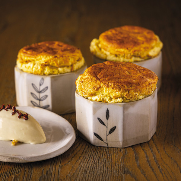 Mélanger la crème de Bresse avec le jus de yuzu et le jus de citron, assaisonner avec le sel puis monter de moitié comme une crème Chantilly.